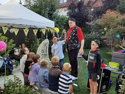 heute komme ich endlich dazu, mein Versprechen einzulösen. Ja, es war eine sehr gelungene und verblüffende Darbietung Ihrerseits. Die lockere und lustige Art hat mich und alle meine Gäste sehr begeistert und mehrmals ins Staunen versetzt. Ein Gast will Sie ja gleich für seine Betriebsfeier vorschlagen. Auch die Kids, wie auch die Erwachsenen, waren echt happy aktiver Teil Ihrer Vorführung zu sein. Weiterempfehlung ist schon fest eingeplant.