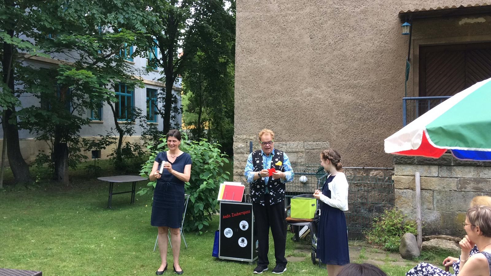 Ein kleiner Gruß von uns verbunden mit einem herzlichen Dankeschön nochmal. Es hat allen super gefallen und sie haben auf der Heimfahrt nach Hoyerswerda nochmal alle Tricks durchgesprochen und haben gerätselt. Waren alle verblüfft. Vielen Dank und Liebe Grüße Beate & Lutz