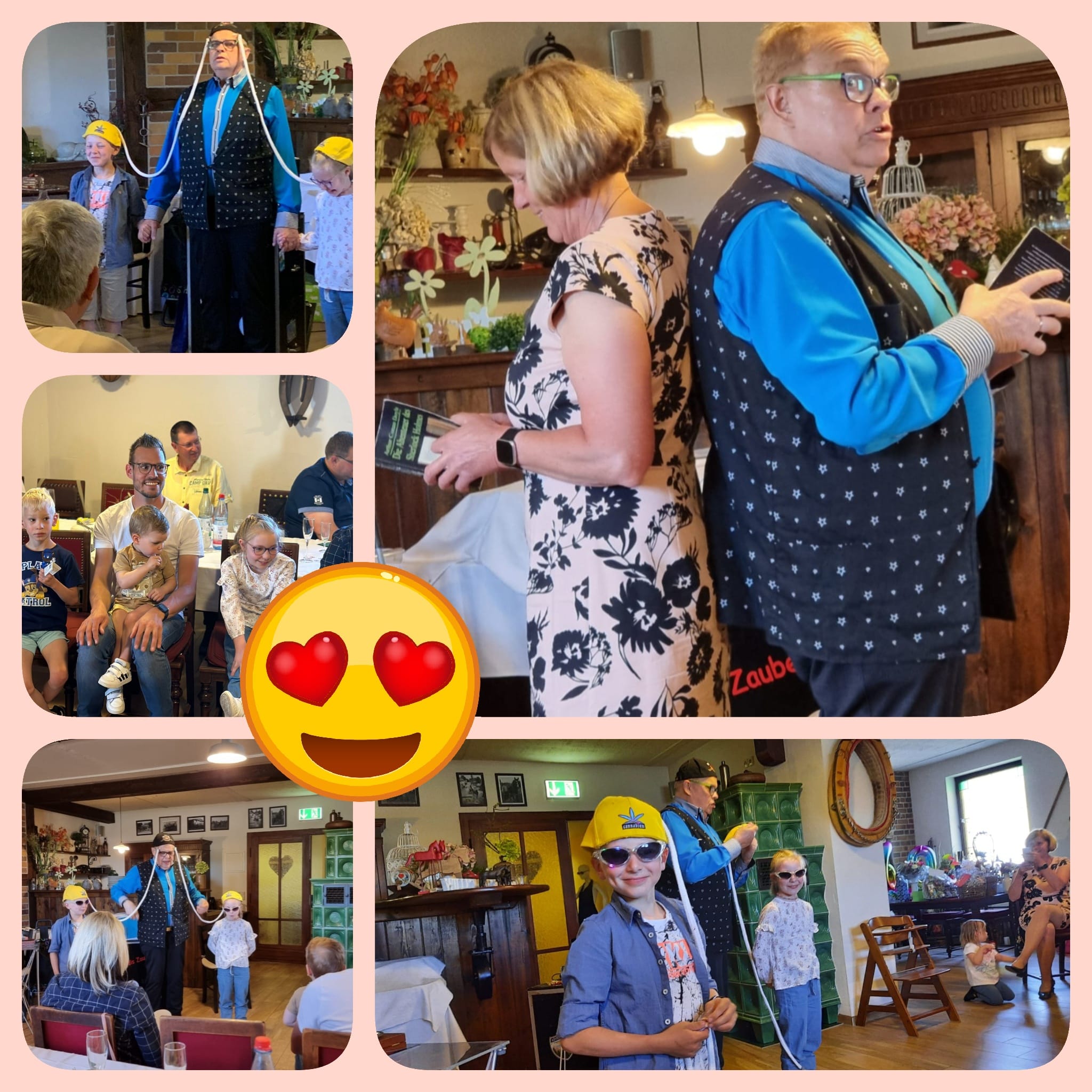 heute komme ich endlich dazu, mein Versprechen einzulösen. Ja, es war eine sehr gelungene und verblüffende Darbietung Ihrerseits. Die lockere und lustige Art hat mich und alle meine Gäste sehr begeistert und mehrmals ins Staunen versetzt. Ein Gast will Sie ja gleich für seine Betriebsfeier vorschlagen. Auch die Kids, wie auch die Erwachsenen, waren echt happy aktiver Teil Ihrer Vorführung zu sein. Weiterempfehlung ist schon fest eingeplant.